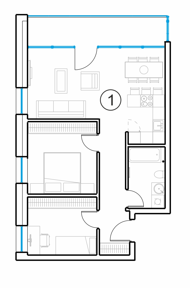 - Gyvenamasis kambarys su virtuve 32.46 m2