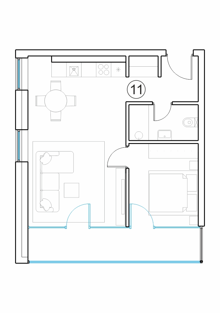 - Gyvenamasis kambarys su virtuve 26.46 m2