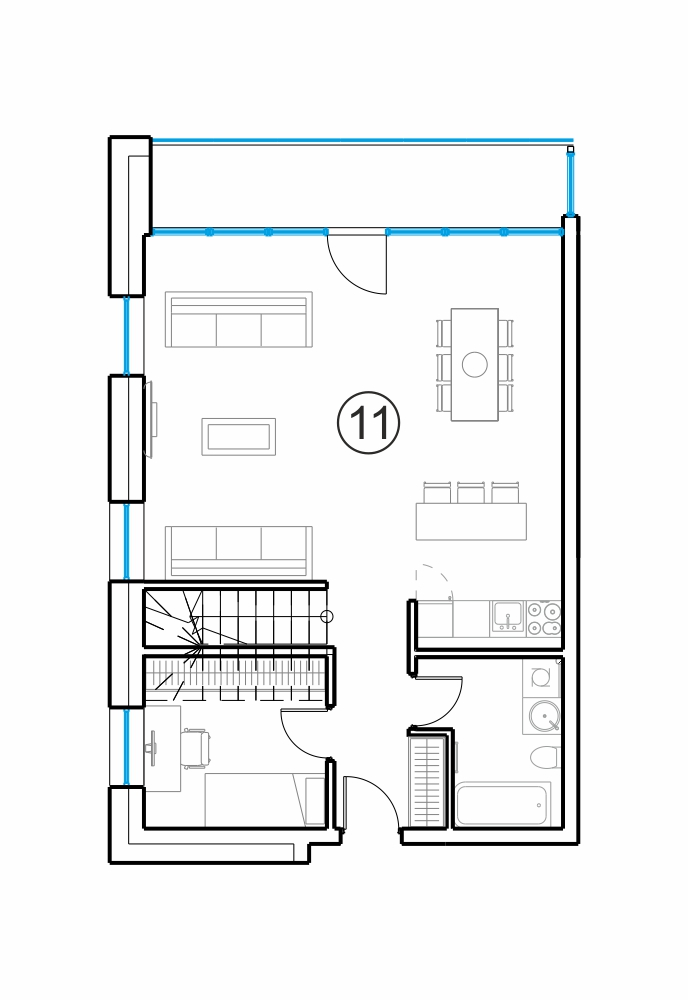 - Gyvenamasis kambarys su virtuve 42.45 m2