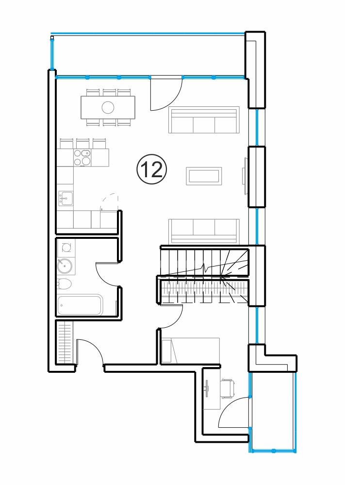 - Gyvenamasis kambarys su virtuve 36.44 m2