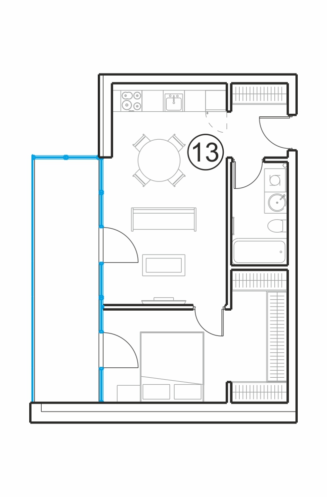 - Gyvenamasis kambarys su virtuve 21.69 m2