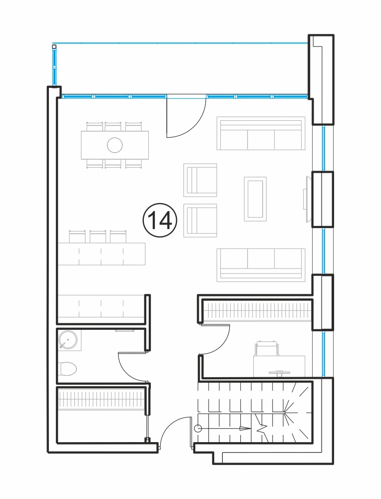 - Gyvenamasis kambarys su virtuve 39.51 m2