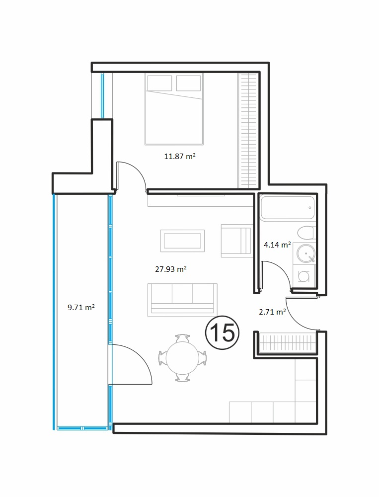 - Gyvenamasis kambarys su virtuve 27.93 m2
