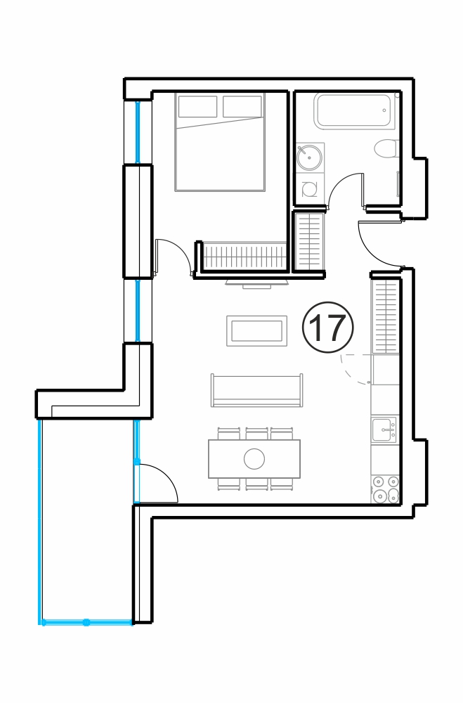 - Gyvenamasis kambarys su virtuve 23.17 m2