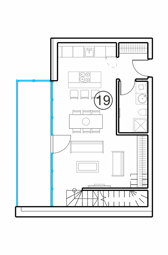 - Gyvenamasis kambarys su virtuve 33.79 m2