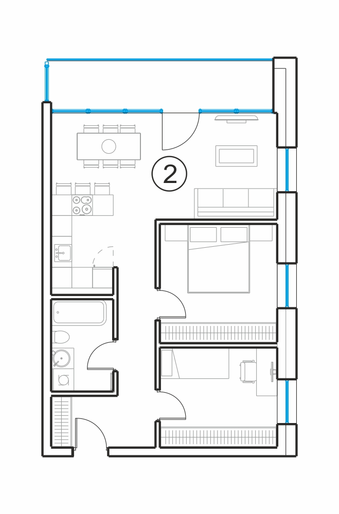 - Gyvenamasis kambarys su virtuve 26.19 m2