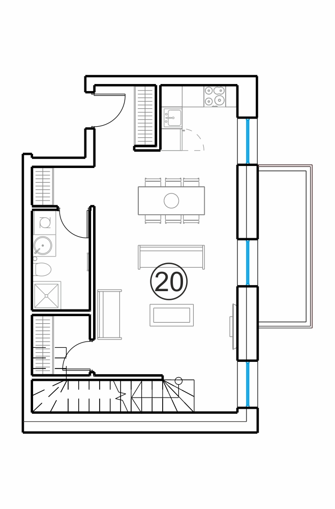 - Gyvenamasis kambarys su virtuve 31.59 m2