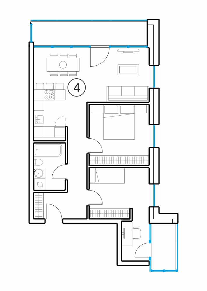 - Gyvenamasis kambarys su virtuve 26.19 m2