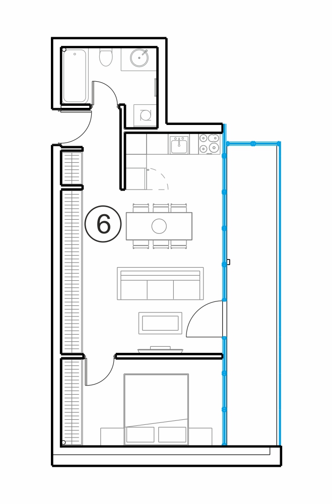 - Gyvenamasis kambarys su virtuve 25.35 m2