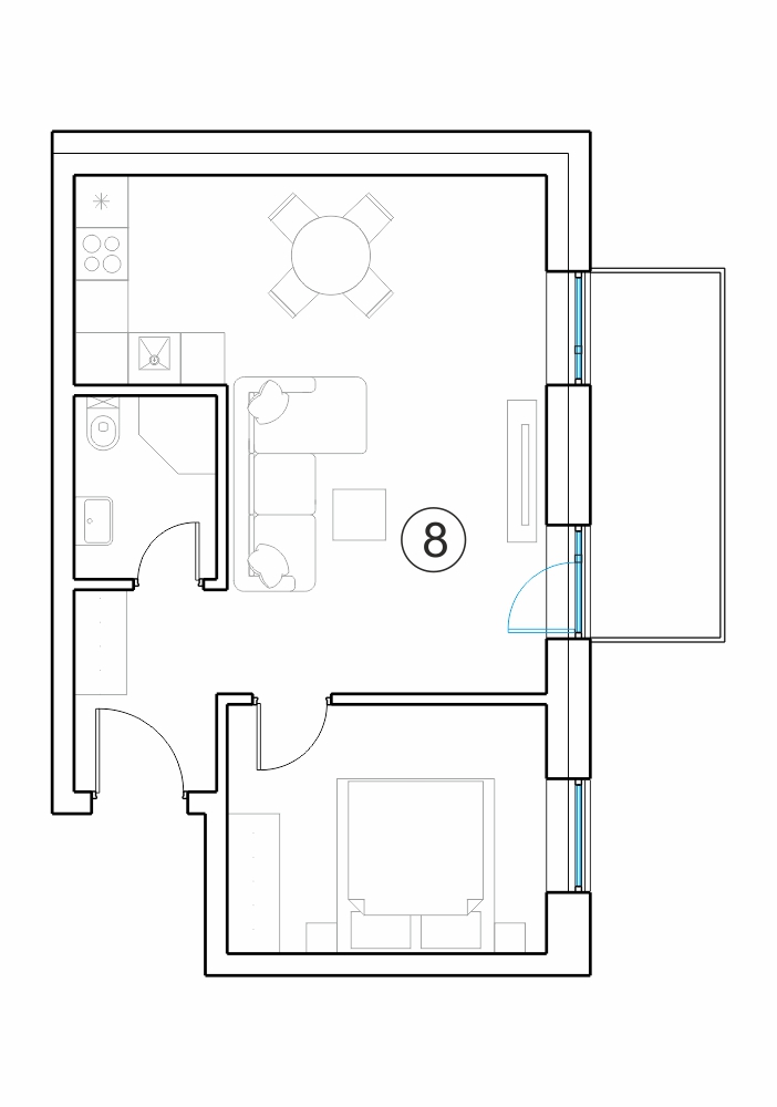 - Gyvenamasis kambarys su virtuve 25.84 m2