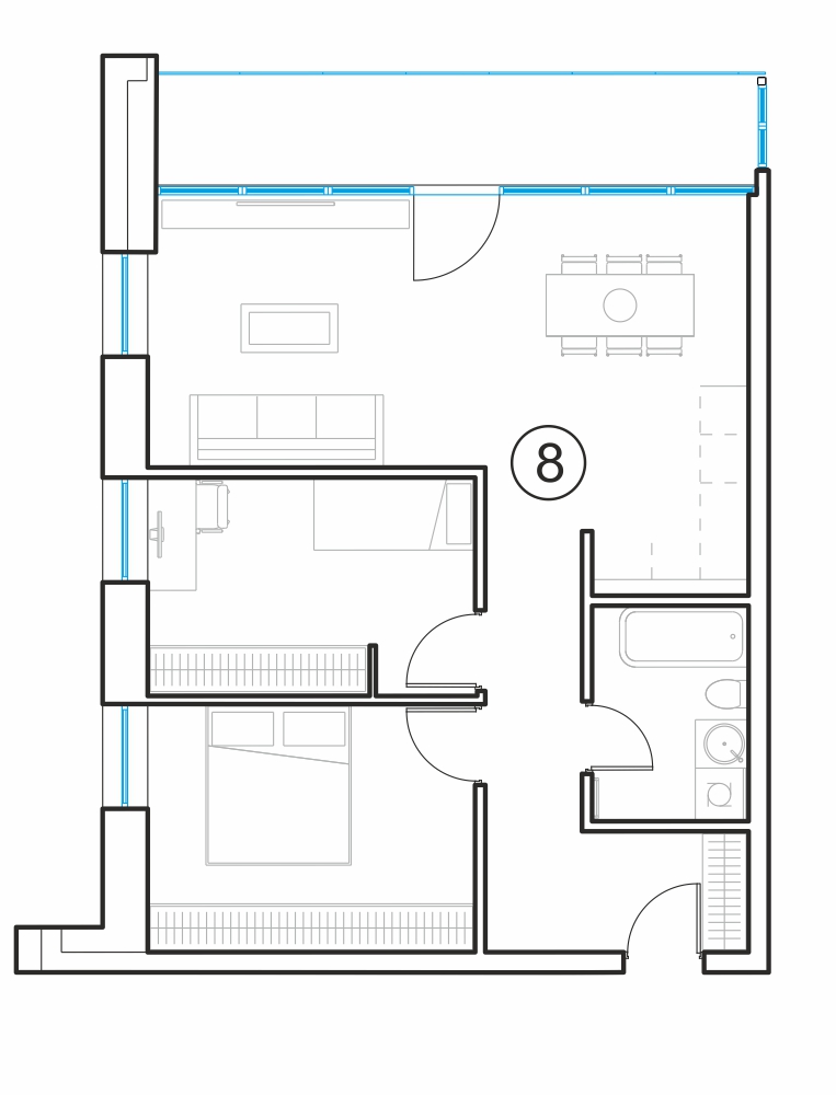 - Gyvenamasis kambarys su virtuve 29.72 m2